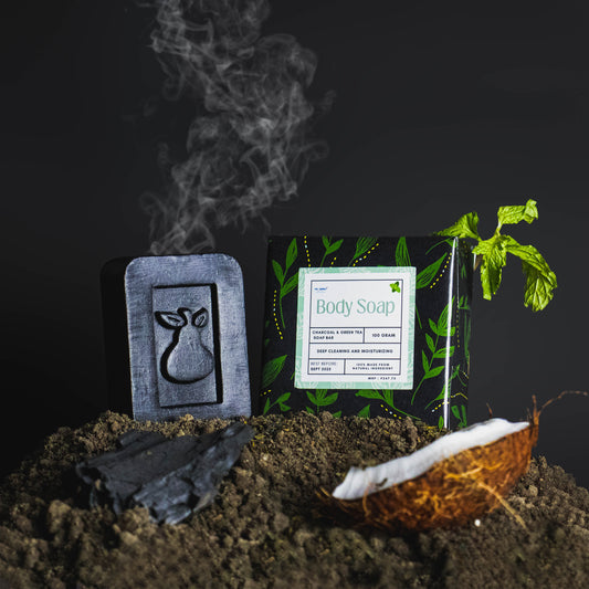 Charcoal & Green Tea Soap with Activated Coconut, Spearmint - Deep Cleansing (4-Pack, 100g Each)